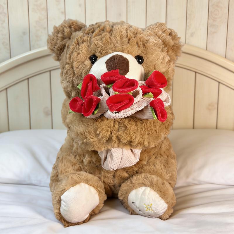 1PC Plush Teddy Bear with Rose Bouquet, Soft Stuffed Animal Toy, Perfect Gift for Valentine'S Day, Anniversaries, Birthdays, Romantic Occasions, Soft Cuddly Gift